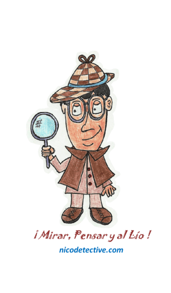 Pues todas estas cosas ocurren en este libro “Nico, el pequeño detective” del que te invito a ver un libro tráiler. Nico es un niño que para ayudar a los demás se hace detective, y buscando casos que resolver se embarca en todo tipo de aventuras. También te cuento que ha inventado un método de investigación que se llama: ¡Mirar, Pensar y al Lío!